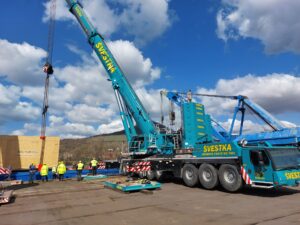 V tandemu proběhla náročná manipulace s generátorem, na které se podílel jeřáb společnosti Pavel Švestka, s.r.o. typu Liebherr LTM 1650-8.1. Celá operace vyžadovala maximální přesnost, koordinaci a zkušenosti všech zúčastněných.