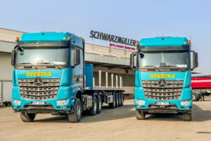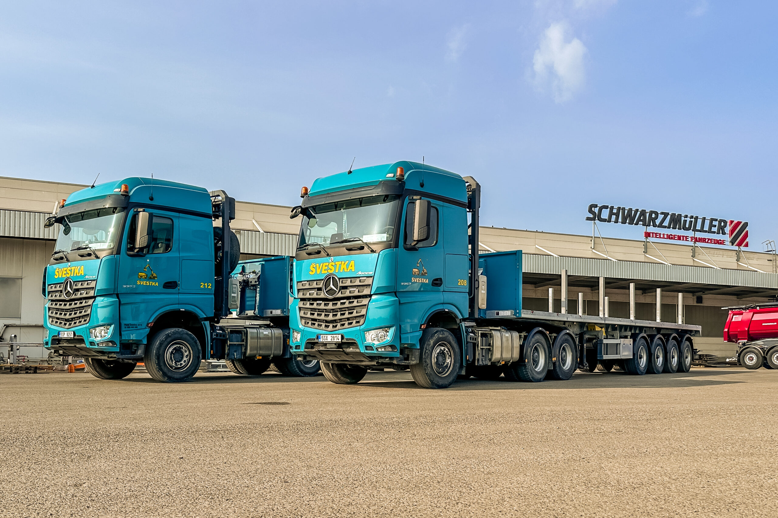 Naše divize nadrozměrné přepravy se rozrostla o čtyřnápravové plošinové návěsy Schwarzmüller. Jsou určené například pro přepravu příslušenství mobilních jeřábů.